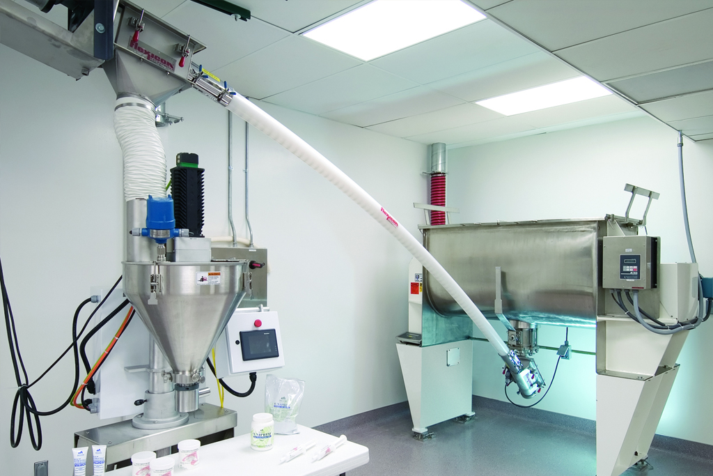 Flexible screw conveyors are an excellent choice for conveying short to medium distances from manual bag dump stations.