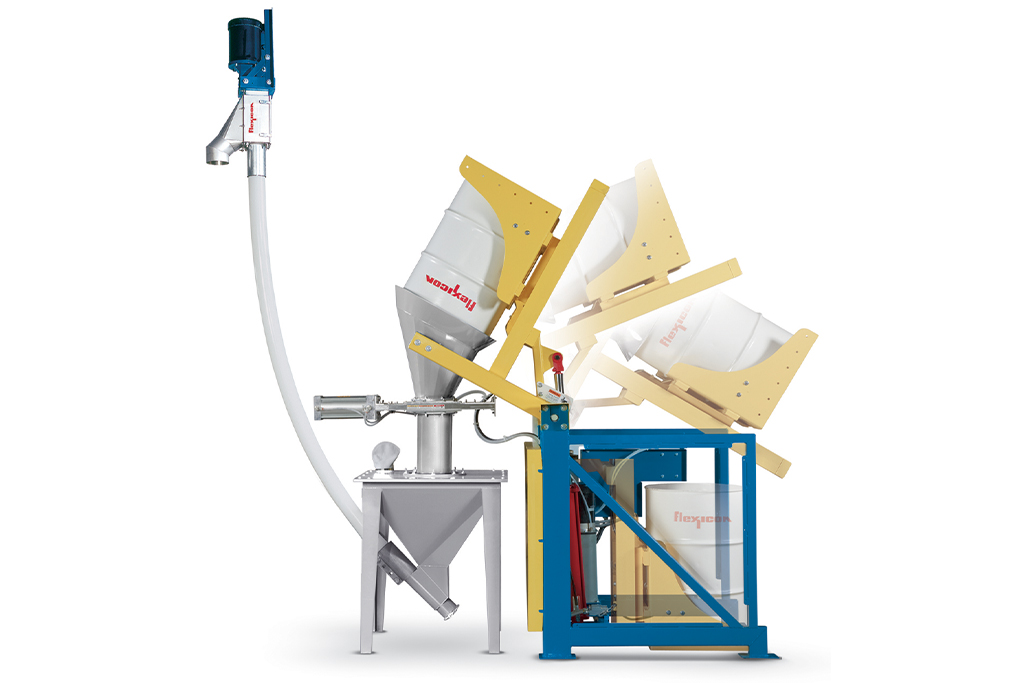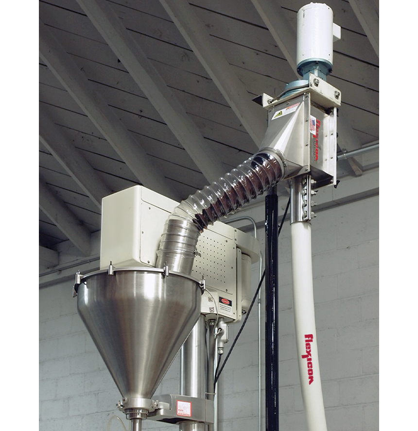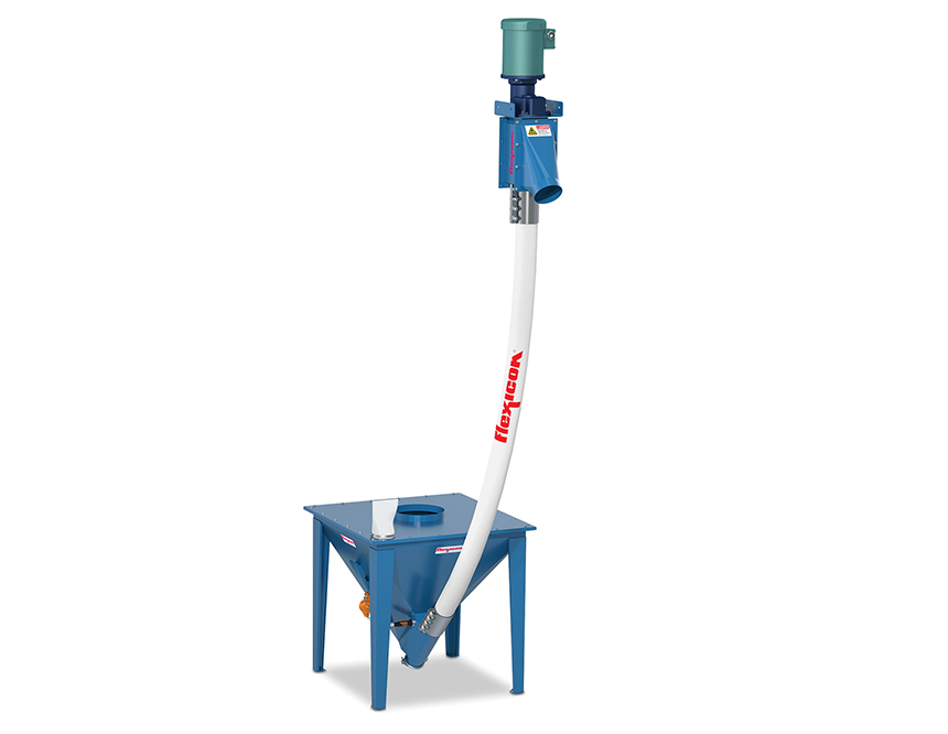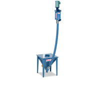 Flexible screw conveyors are a simple solution for elevating material from mid-sized bulk containers.