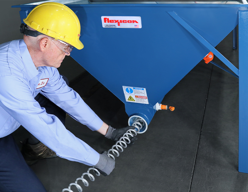 Hopper Flow Promotion – Flexicon offers hopper wall vibration devices, mechanical agitation paddles, or material aeration pads to assist with the flow of the most difficult materials.