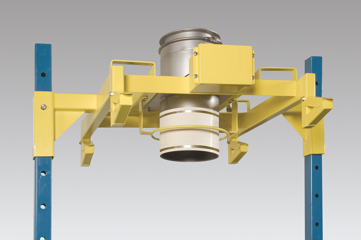 The filler is equipped as standard with fill head height adjustment via fork truck to accommodate all popular bag sizes, an inflatable cuff to seal the bag inlet spout, and a feed chute vent port for dust-free air displacement during filling.
