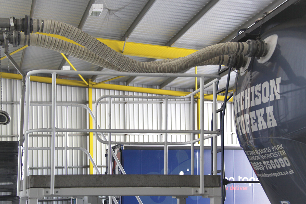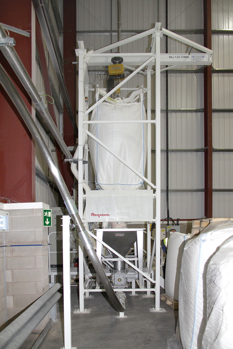 At the heart of the bulk transfer system (manufactured by Flexicon Europe Ltd, Herne Bay, Kent, UK), is a Model BFC bulk bag discharger configured with a cantilevered I-beam, electric hoist and trolley, flow promotion devices and a hopper equipped with a rotary airlock valve. The dilute phase pneumatic conveying portion of the system consists of a positive displacement pressure blower, pneumatic conveying line and a filter receiver located downstream from the bulk tanker truck. Automated controls orchestrate operation of the flow promotion devices, rotary airlock valves, blower and filter receiver.