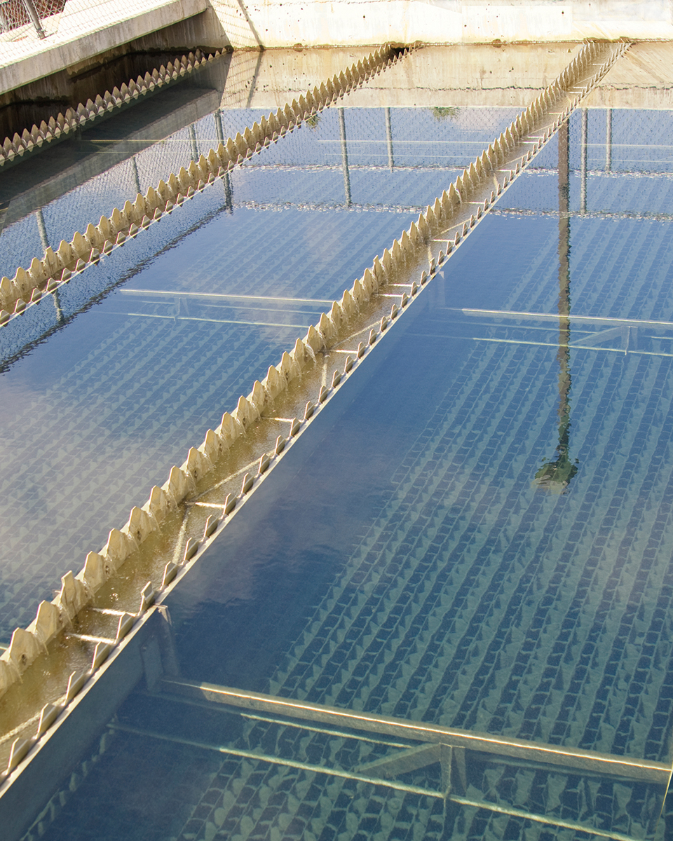 After addition of liquid alum, sludge conditioners, and polymers in the clarifier, filtered water is pumped to a clear well located at the water treatment facility with a capacity of 180,000 gal (820,000 l) and to two reservoirs within the city itself, each holding 1.5 million gal (6.8 million l), for distribution to residents of the city of Swift Current.