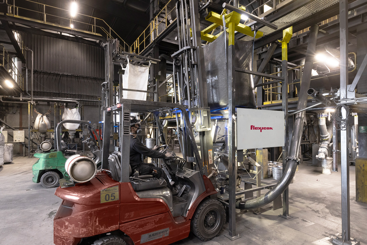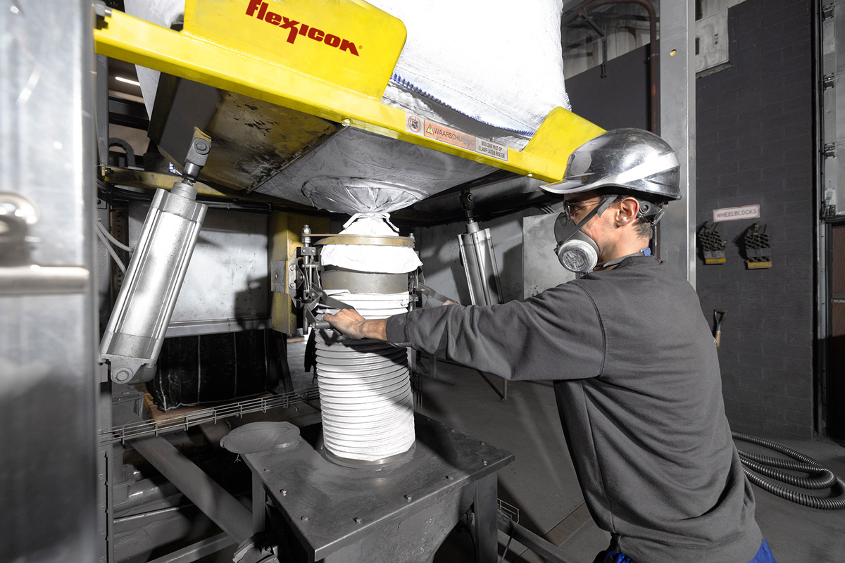 On the recommendation of Dutch distributor Matec Techniek, the company turned to Flexicon (Europe) Ltd., which specialises in bulk bag filling and discharging systems. “We tried one bulk bag filling station, and that reduced our dust big time,” Stassen explains. “So we chose to go forward with Flexicon for all 11 stations, followed over the years by nine bulk bag dischargers and numerous flexible screw conveyors. They reduced dust tremendously in the plant.”