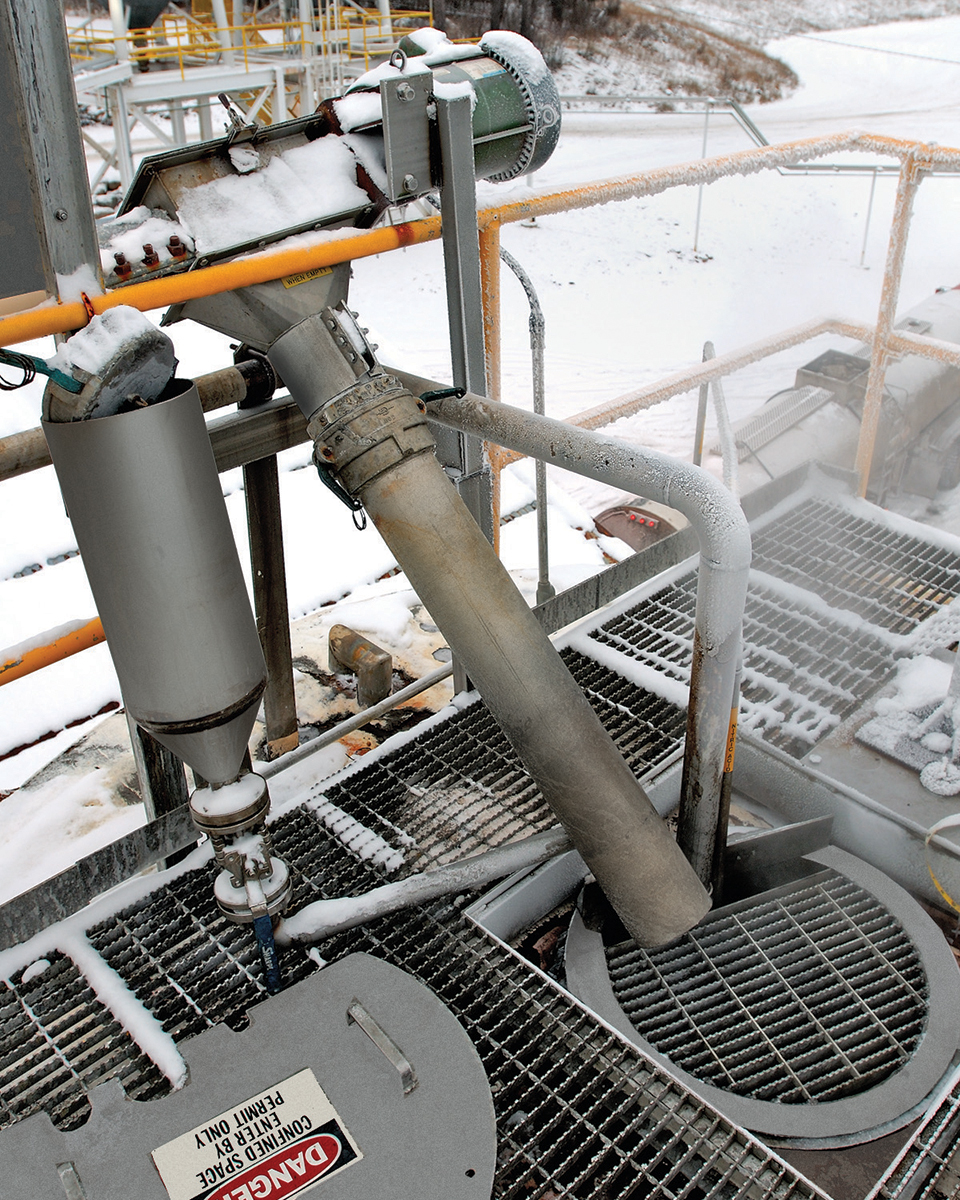 “We wanted a system that eliminated spillage of solution,” says Jon King, Minnesota Explosives’ general manager of operations. So the company replaced the open slush box with an enclosed material handling system consisting of bulk bag discharger, a flexible screw conveyor to handle the sodium nitrate, and two 230,000 lb (104,000 kg) capacity tanks in which to blend the material with the ammonium nitrate solution. “Except for some granules that occasionally need to be swept and put into the hopper,” remarks King, “It’s now a completely clean operation.”