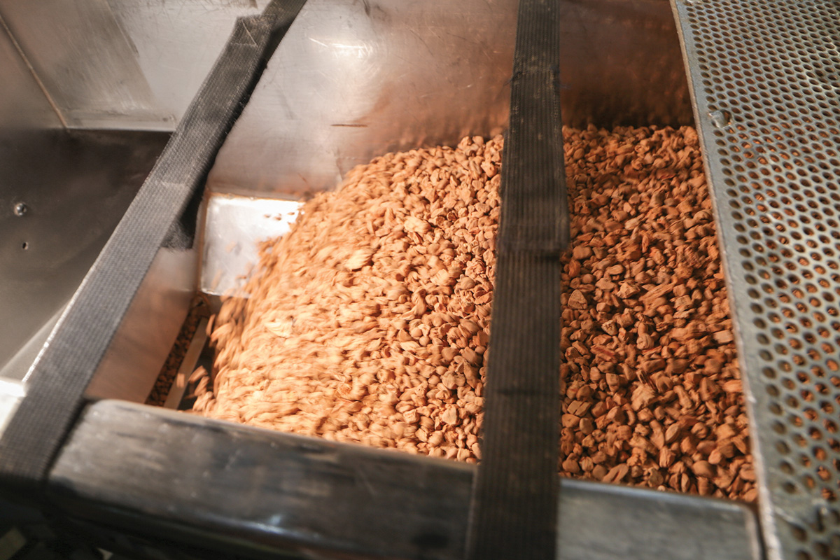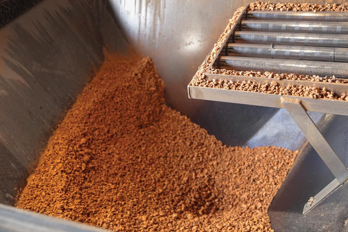 From the pit, cork granules, together with cork dust and any foreign objects, are conveyed pneumatically to a large surge hopper positioned above the cork cleaning system.