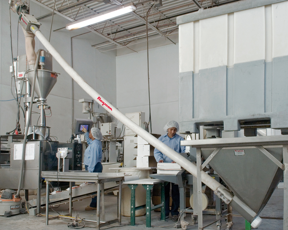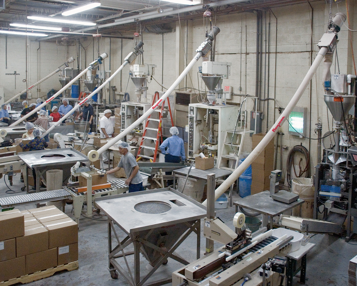 World Flavors’ packaging manager Russ Perry, who has been with the company since 1987, recalls the days before the company installed its flexible screw conveyors. “Previously, we manually scooped material into the filling machine hoppers,” he says.