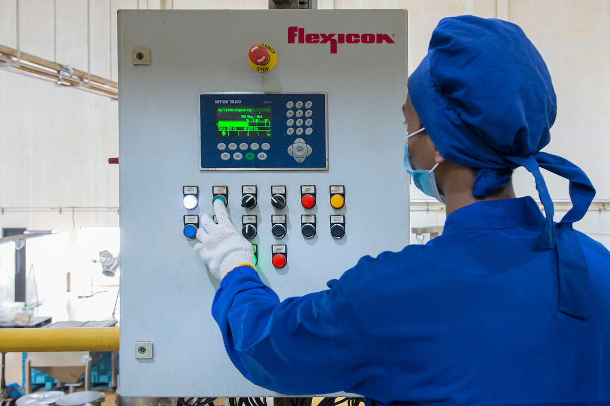 “At the old factory, we added coconut and cane sugar from 25 kg (55 lb) bags, and everything was done by hand, including transporting and weighing the sugar and cutting the bags open one by one,” says Mr. Na. “That was a lot of work.”