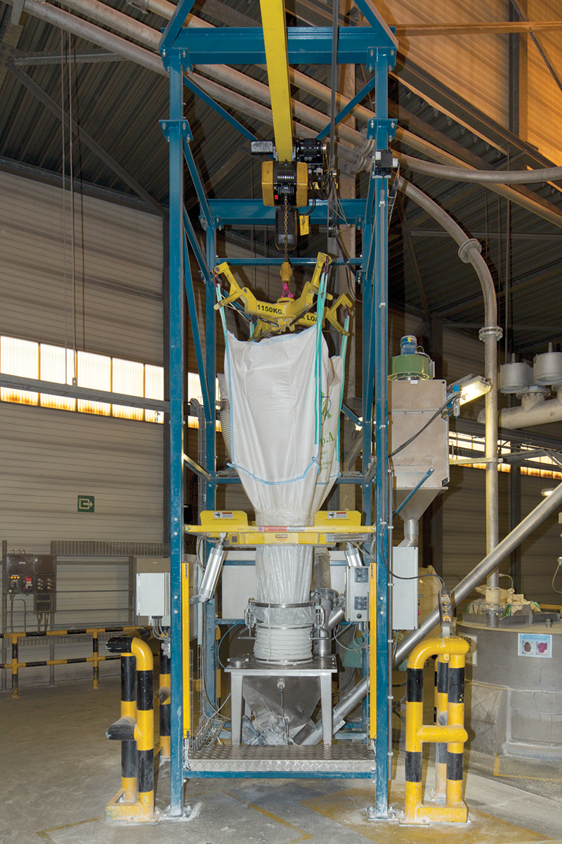 Apart from the risk of injury in handling bulk bags and climbing up and down platforms, “unloading generated dust, which settled on the plant floor,” says Drabbe.
