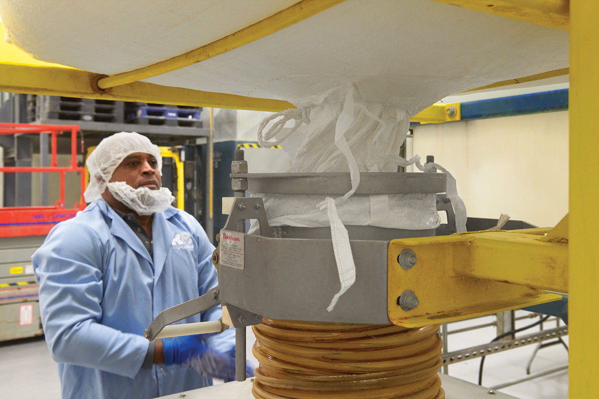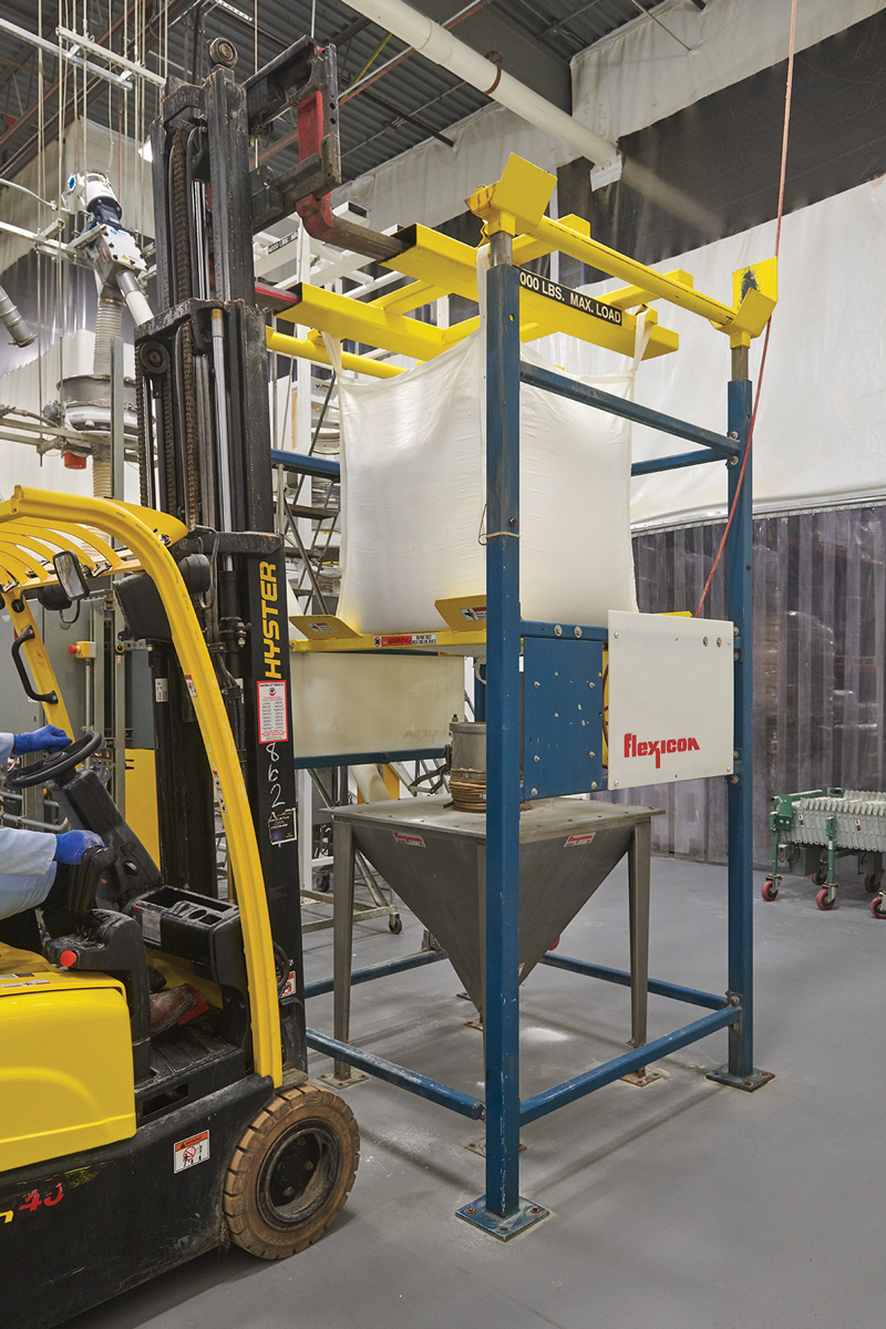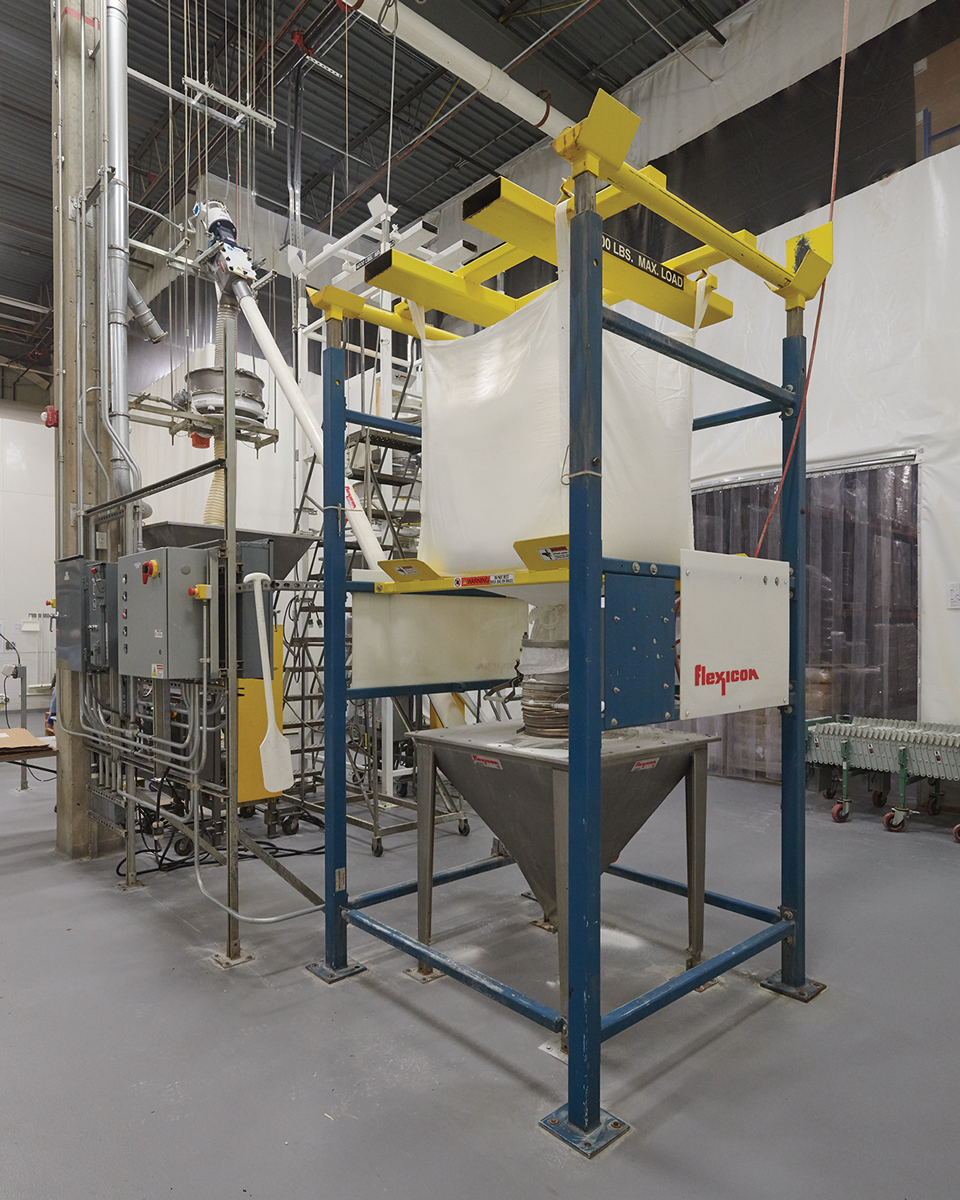 To provide redundancy, the company added a second model BFF bulk bag discharger in 2017. “At the time, we didn’t need the capacity,” says Keating, “but now our volume is picking up to where we’re utilizing them both.”