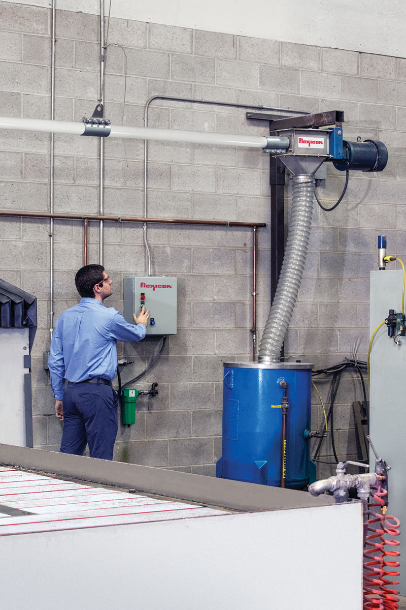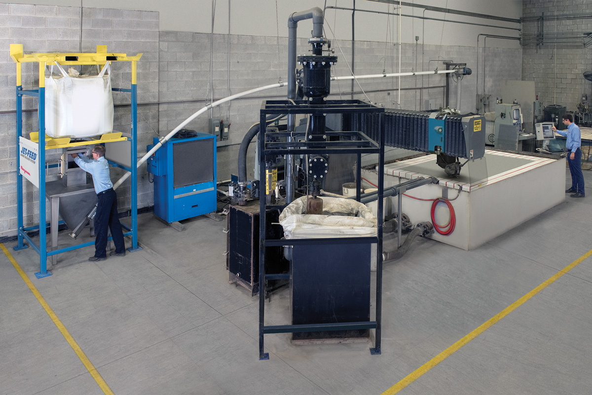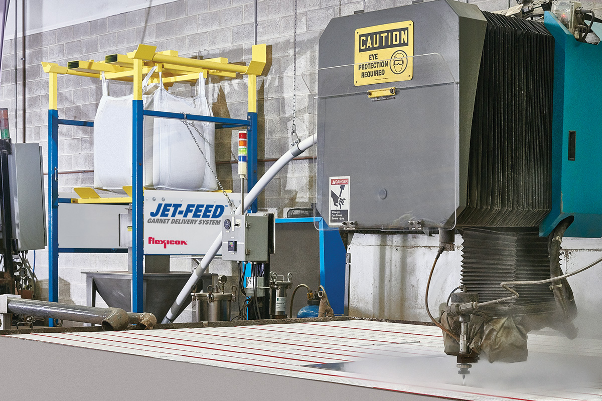 In 2011, management upgraded the process by feeding garnet directly from 4,000 lb (1814 kg) bulk bags to the pressure pot by installing an automated bulk bag discharging-conveying system from Flexicon Corp.