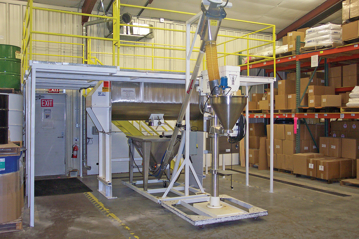 “We looked at all types of conveyors,” relates Davis, “but quickly decided a flexible screw conveyor was best type for our operation; it can convey vertically, horizontally, and in just about any configuration we need throughout the plant.”