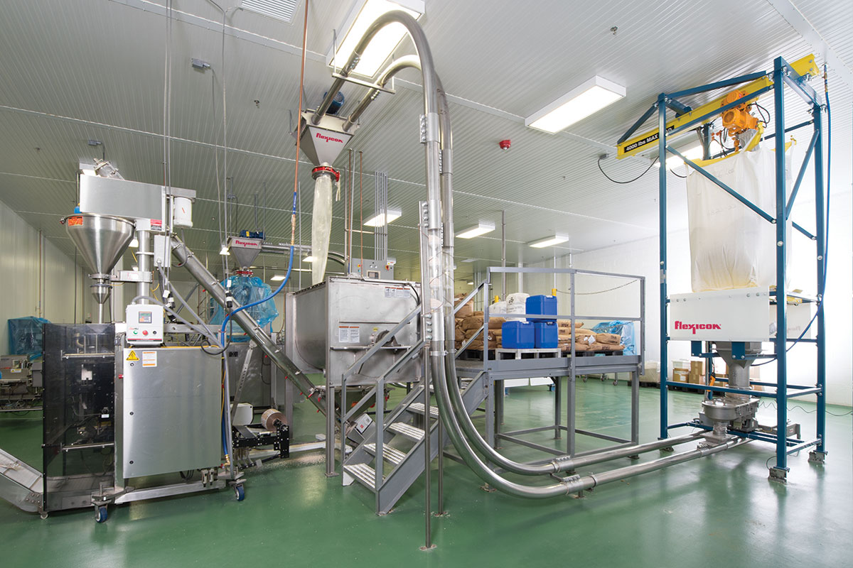 After investigating various ways to upgrade the existing equipment, all of which proved unsatisfactory, Smulders decided to build an entirely new facility with an integrated bulk handling system designed specifically for gluten-free baked goods. He commissioned an independent engineering firm to handle the overall design. The firm worked closely with the Project Engineering Division of Flexicon Corporation, Bethlehem, PA, to create a fully integrated system based on the company’s FLEXI-DISC® Tubular Cable Conveyor (TCC) system.