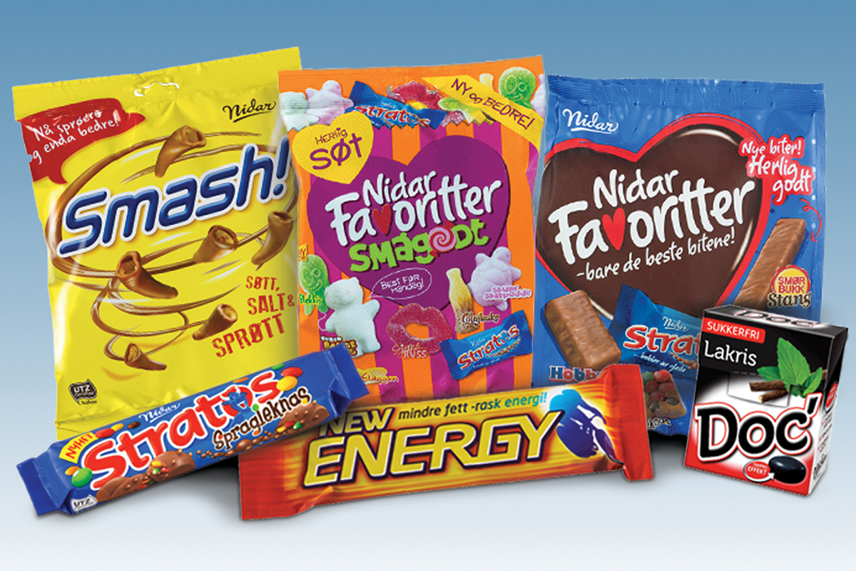 The company produces chocolate bars, boxed chocolates, marzipan, gummi candies, caramels, licorice products, and pastilles under a range of historic brand names. Although most of Nidar’s products would be recognized anywhere, Norwegians have some historic preferences in confectionery. One is marzipan, an essential part of Christmas and Easter celebrations. Another speciality which the firm also exports to Finland is salmiak — licorice flavored with ammonium chloride, which gives it a tongue-numbing salty taste.