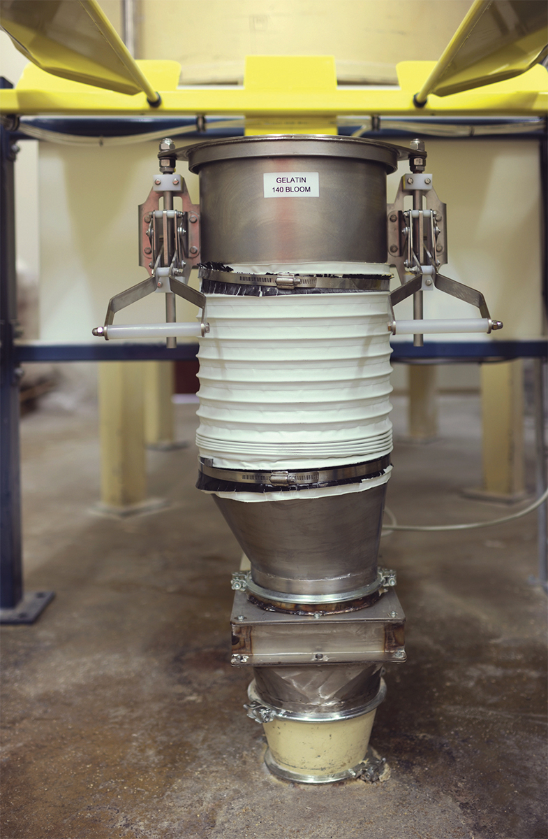 The newest of the bulk bag dischargers is a twin half-frame unit, which handles two types of starch in a tight space on the plant’s fourth floor.