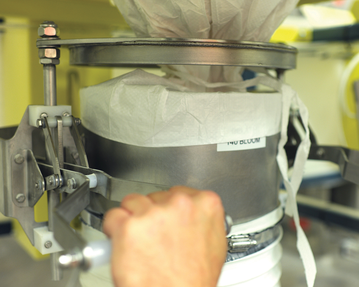 Previously, starch was purchased in 25 kg (55 lb) sacks which operators carried from the third floor to the fourth floor where it was dumped into two large vessels, each holding 200–300 kg (440–660 lb). Since the process consumes 100 kg/hour (220 lb/hour) of starch, 32 sacks were handled manually per eight-hour day. “The operators were climbing stairs numerous times a day to keep the vessels filled,” Mr. Kvingedal says.