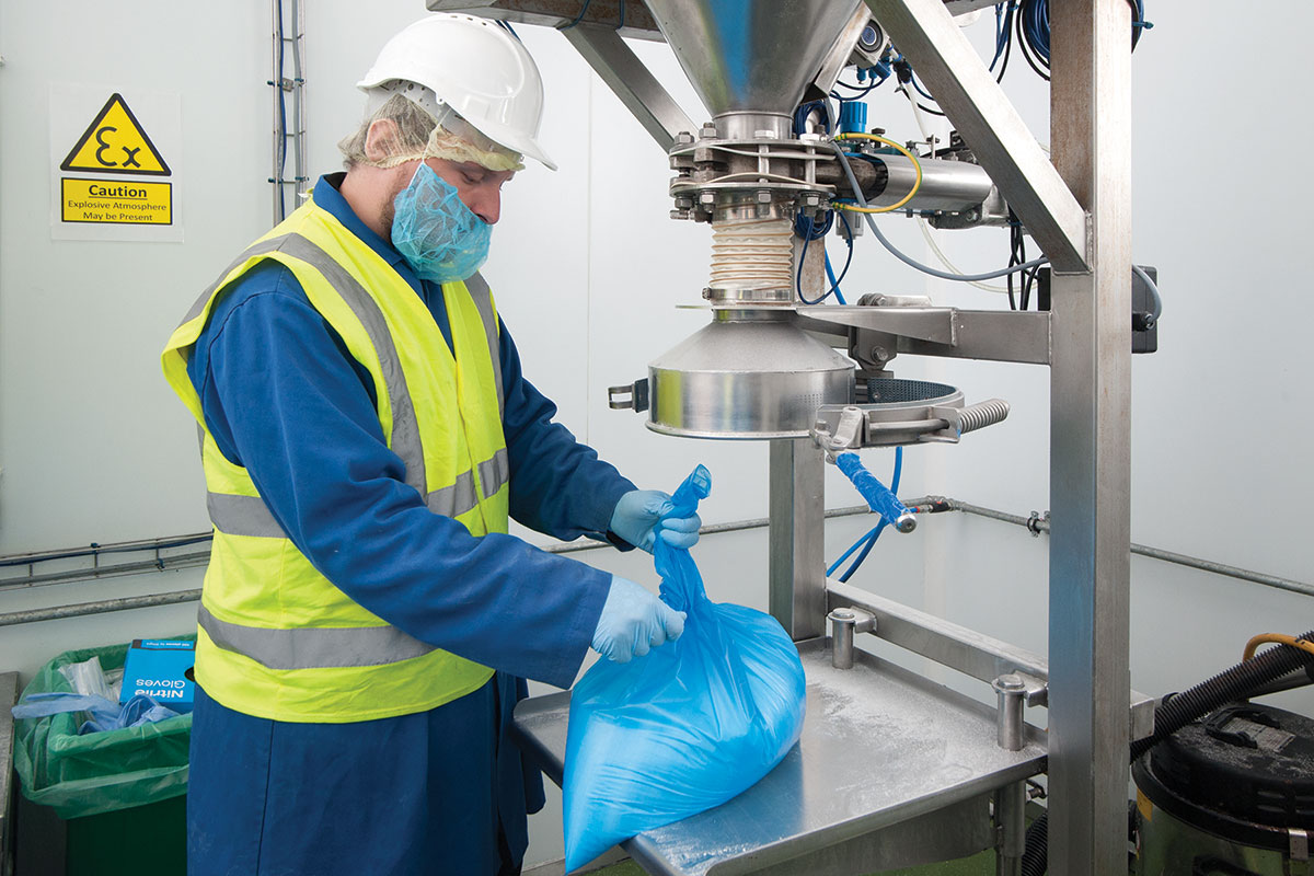 The company now accomplishes the task in one-third less time with less labour while meeting ATEX requirements using an automated bulk bag weigh batching system with integral flexible screw conveyor from Flexicon Europe.