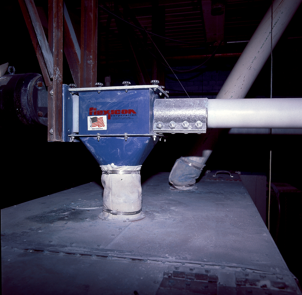 From each bulk bag discharger, dust is controlled by a 12-in diameter iris valve with a flexible, impermeable diaphragm that allows the operator to pull the tied bag spout into the intake chute and close the valve around the spout. The spout is then untied, the chute’s access door closed, and the notched valve released slowly, preventing uncontrolled bursts of material from the bag and the escape of dust.