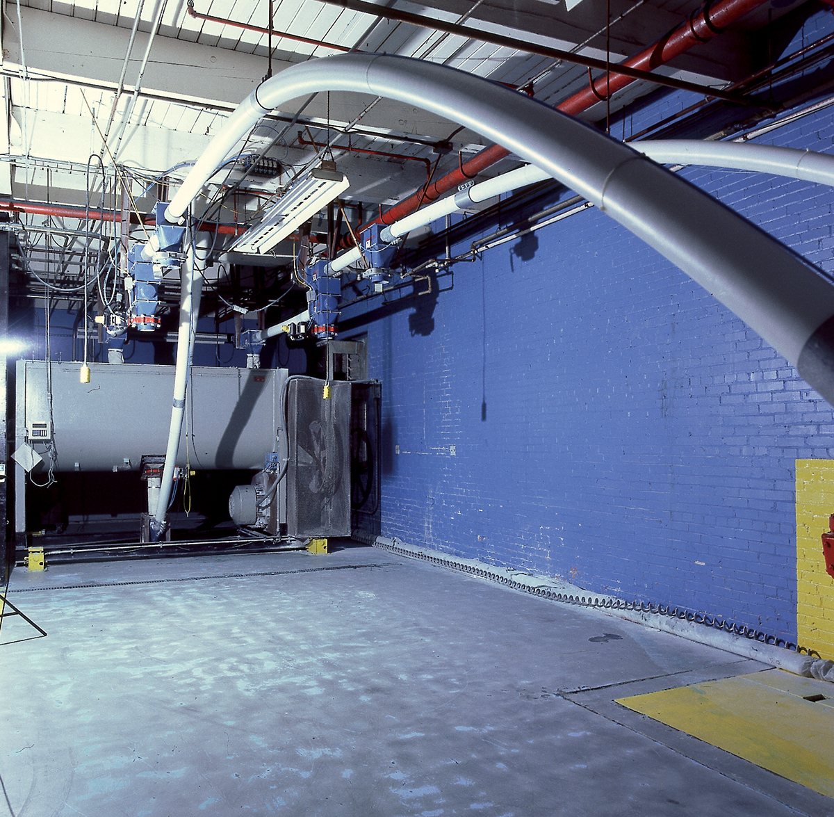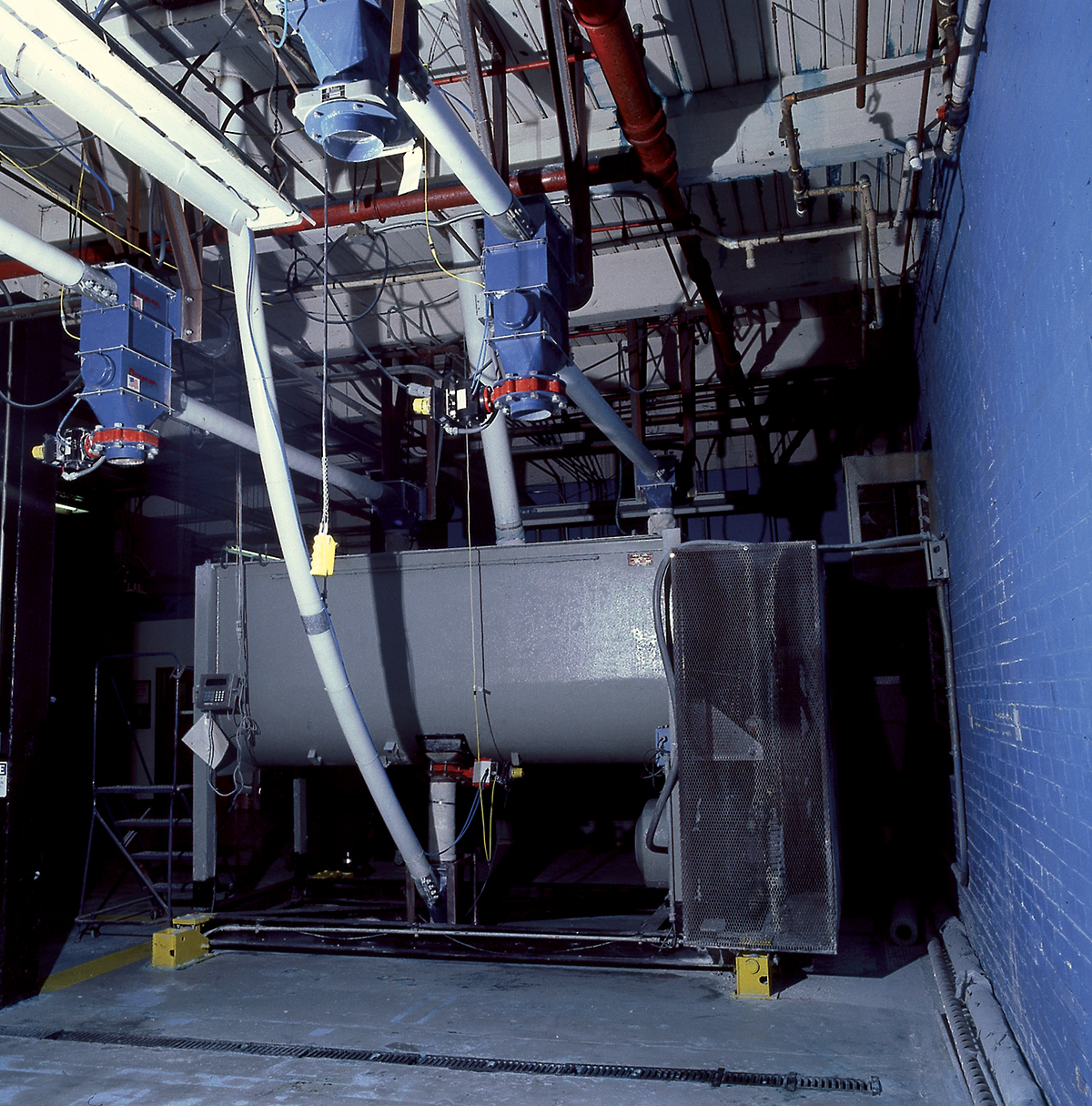 The batching system eliminates the dust previously generated when dumping 50-lb bags into the bulk mixer. The powders remain enclosed from the time the bulk bags are connected, through conveying process and final extrusion. “The whole system is sealed tight,” says Willert.