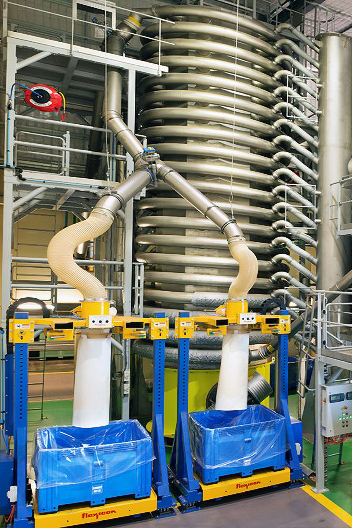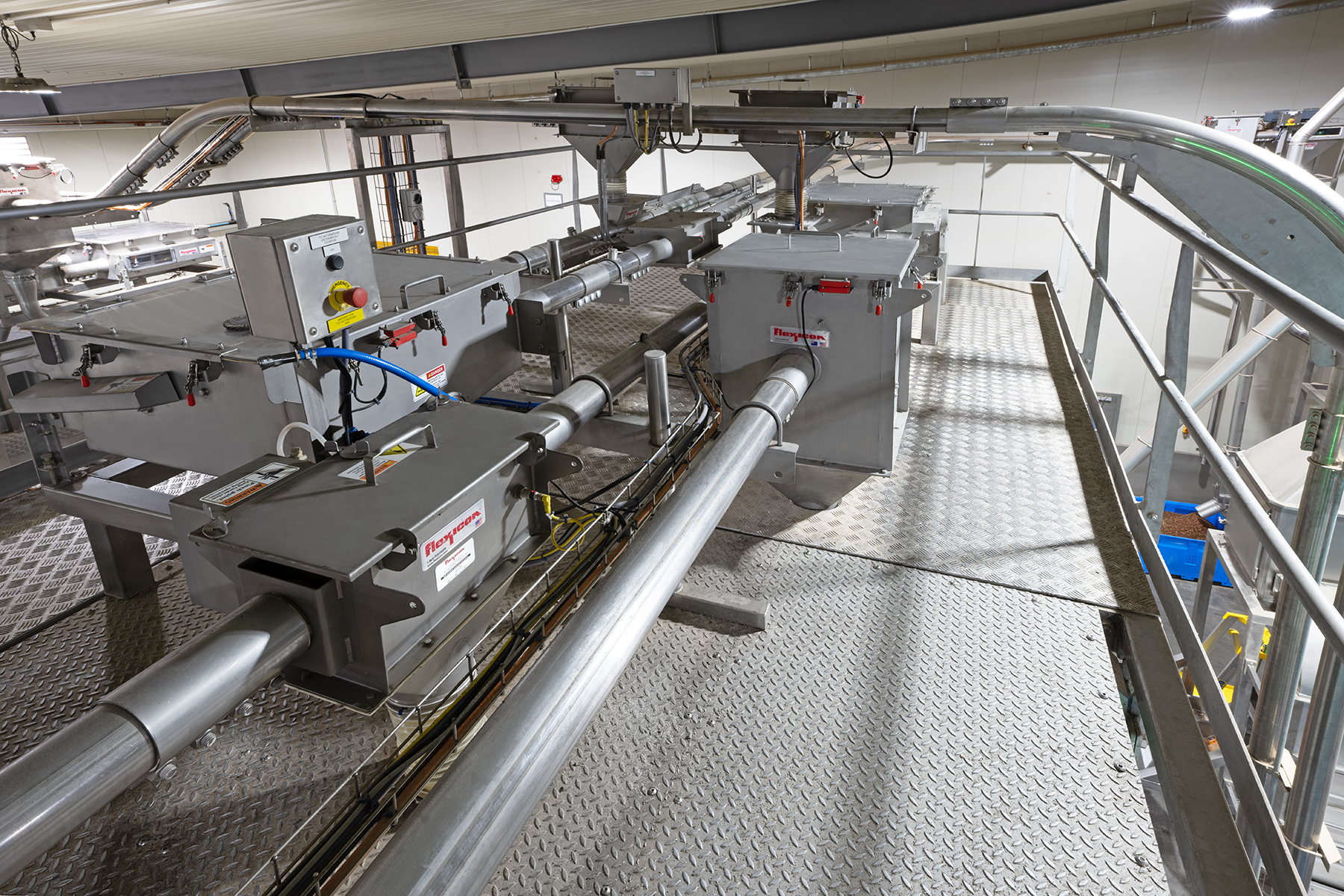 All six conveyor systems are integrated into a plant-wide control system, creating a seamless connection between upstream and downstream processes. To facilitate this, Flexicon collaborated closely with a local controls integrator, ensuring the systems were perfectly synchronized and that the integration was executed smoothly, enhancing overall system performance and reliability.