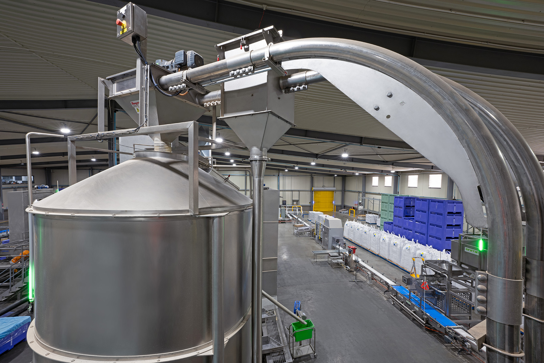 During the planning process for this expansion, Almondco foresaw the need for an effective transportation and storage system for handling high volumes of the fragile, raw and blanched almonds. They didn’t have to look too far to find the right supplier.