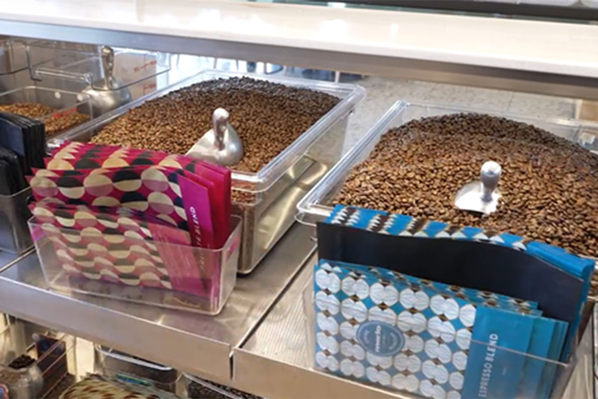 Now, coffee beans moving through the clear tubing capture the attention of café customers soon as they enter the retail store. This makes a strong statement about Merlo’s fresh roasting of their beans on site and prepares them for a unique coffee experience.