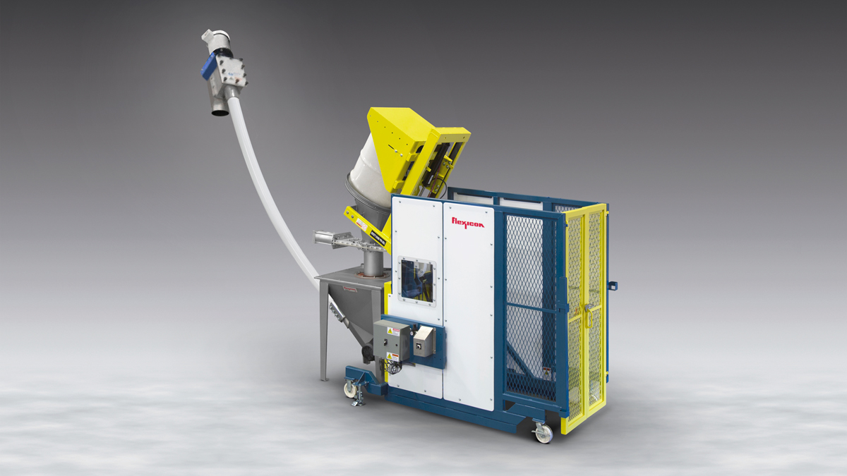This new mobile TIP-TITE® Drum Dumper with safety cage allows hands-free, automated dumping of bulk solid materials from 30 to 55 gal (115 to 200 liter) drums throughout the plant, with no dusting or danger associated with sudden shifting of contents.