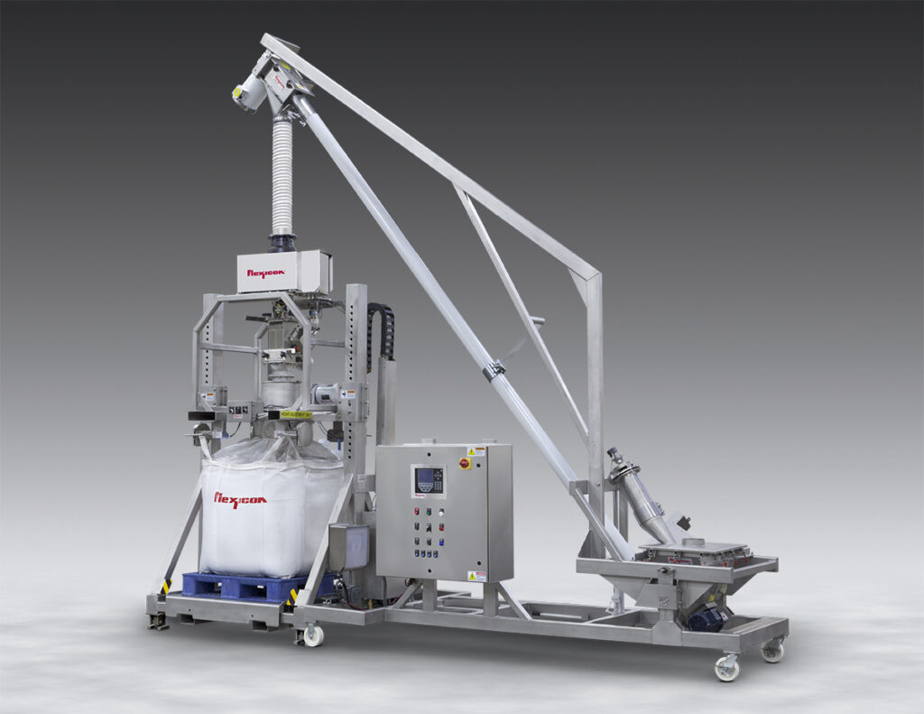 This mobile Bulk Bag Filling System features an integral metal detector/separator and a tilt-down conveyor/feeder for dust-free filling at multiple locations.