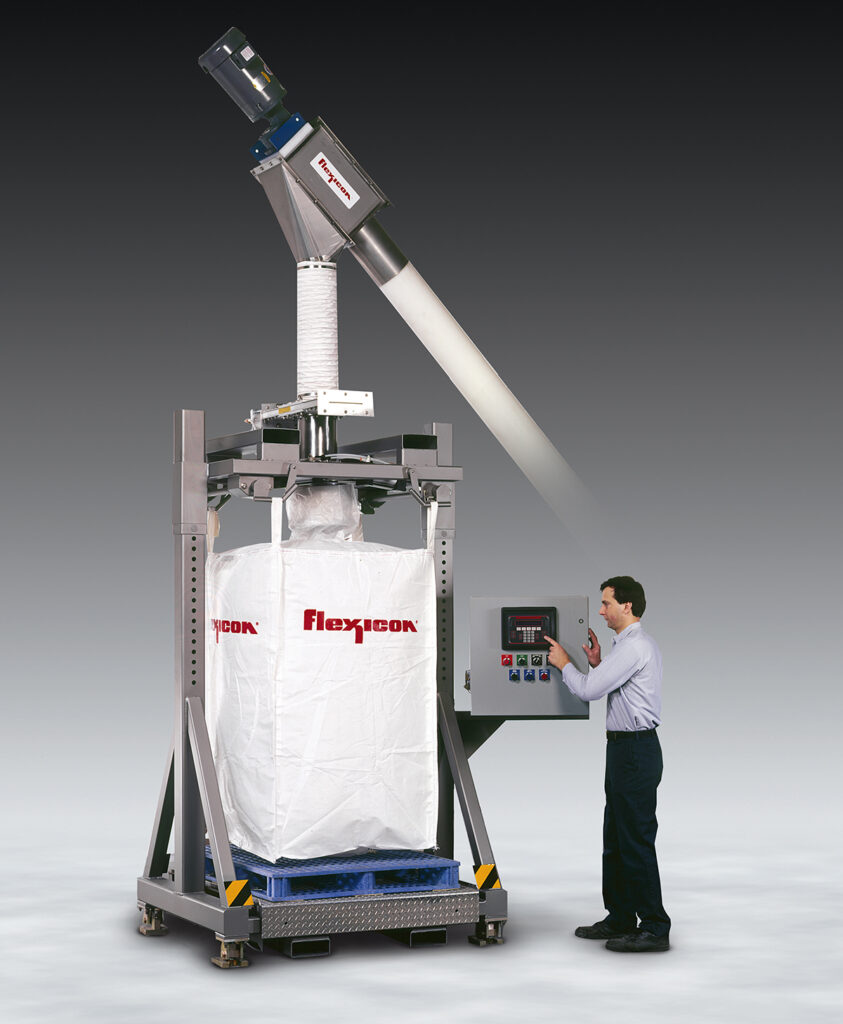 Flexicon also offers REAR-POST bulk bag fillers for high-capacity roll-through conveying applications, and patent-pending SWING-DOWN® bulk bag fillers that lower the fill head and pivot it to the operator for connecting of empty bulk bags at floor level.