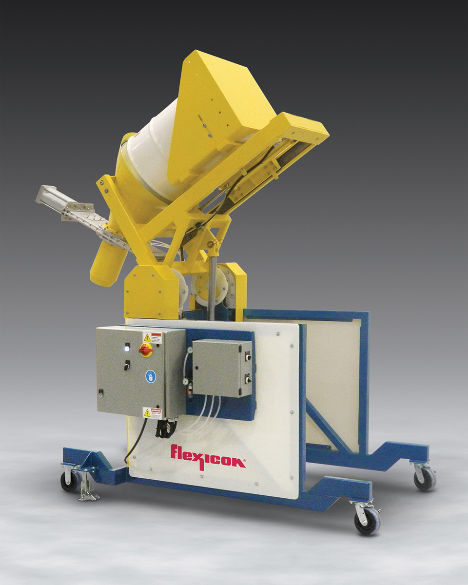 The unit accommodates drums from 30 to 55 gal (115 to 200 liters) weighing up to 750 lb (340 kg) and measuring 36 to 48 in. (91 to 122 cm) in height.
