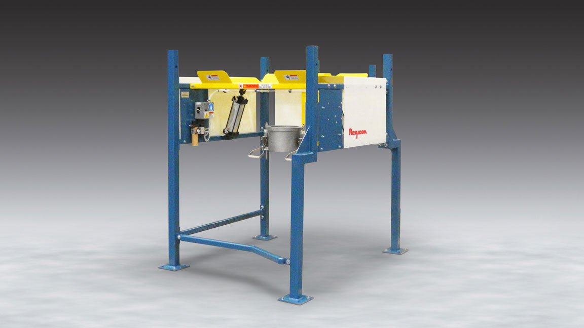 The discharger is also equipped with FLOW-FLEXER® bag activators that raise and lower opposite bottom edges of the bag at timed intervals, loosening compacted materials and promoting material flow through the bag discharge spout. As the bag lightens, the stroke of the bag activators increases, raising the bag into a steep “V” shape, eliminating dead spots for total evacuation of material with no manual intervention.