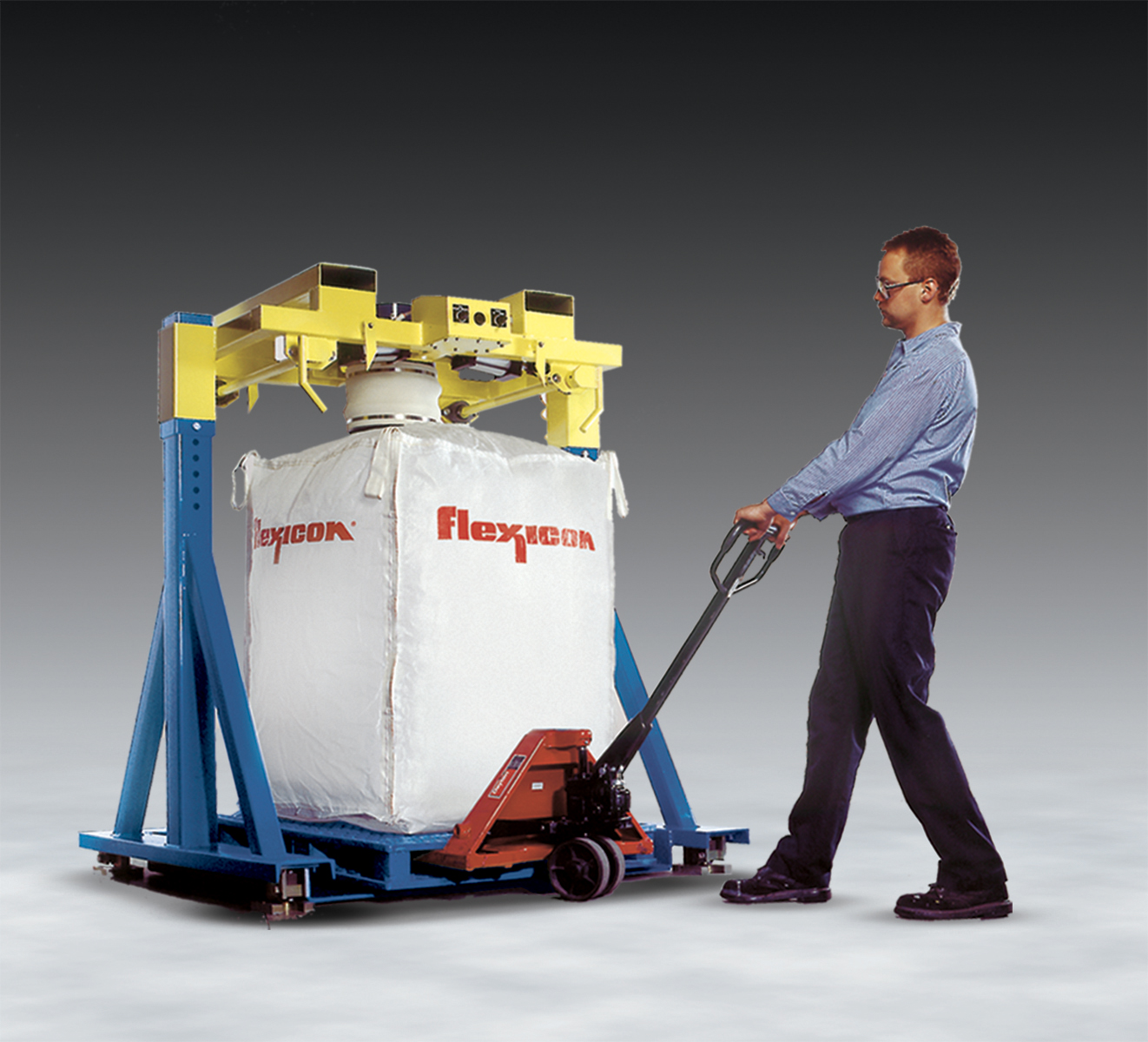 Standard units for low cost, low volume filling applications are offered with primary bag filling components: manual fill head height adjustment to accommodate all popular bag sizes; pneumatically retractable bag hooks; inflatable cuff to seal the bag inlet spout; and double wall product inlet port with air displacement outlet port for dust-free filling.
