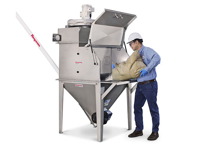 Dust hoods, filtration and pneumatic pulse cleaners support manual dumping of calcium carbonate with efficient dust control.