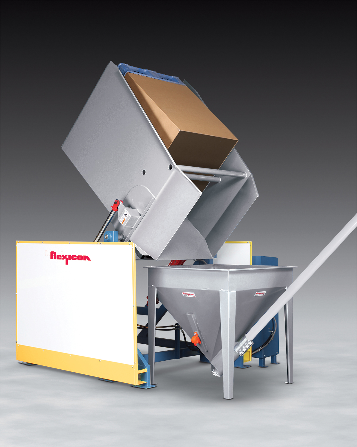 BETHLEHEM, PA – An all-new Open Chute Box Dumper from Flexicon offers a safe, low cost method of discharging bulk solid materials from boxes, totes and other containers when dust containment is not a requirement.