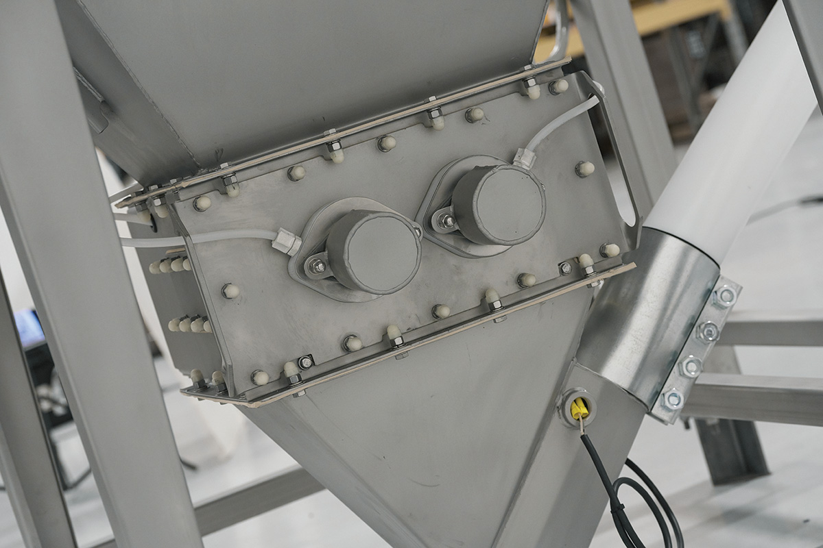 A FLEXI-FORCE® lump breaker integral to the hopper reduces agglomerates and promotes the continuous flow of material into the charging adapter of the flexible screw conveyor.