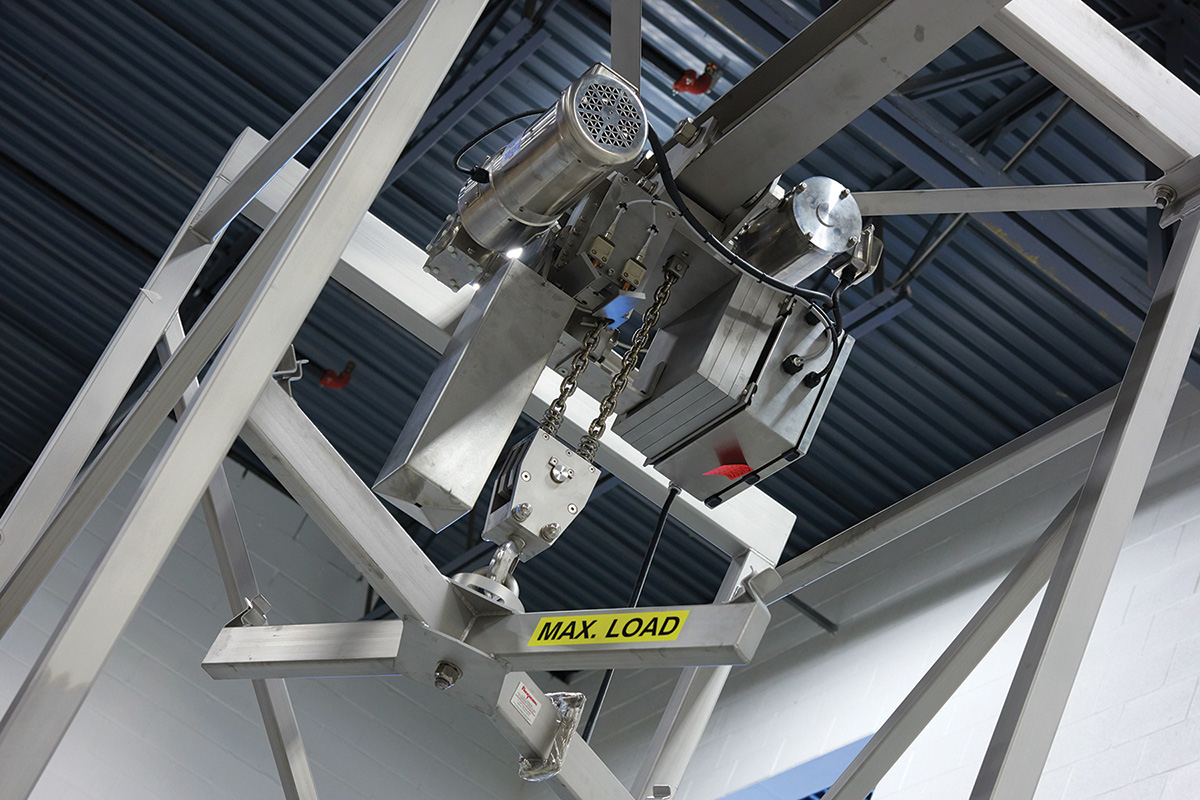 The entire system is constructed of stainless steel finished to sanitary standards, and is rated for wash down.