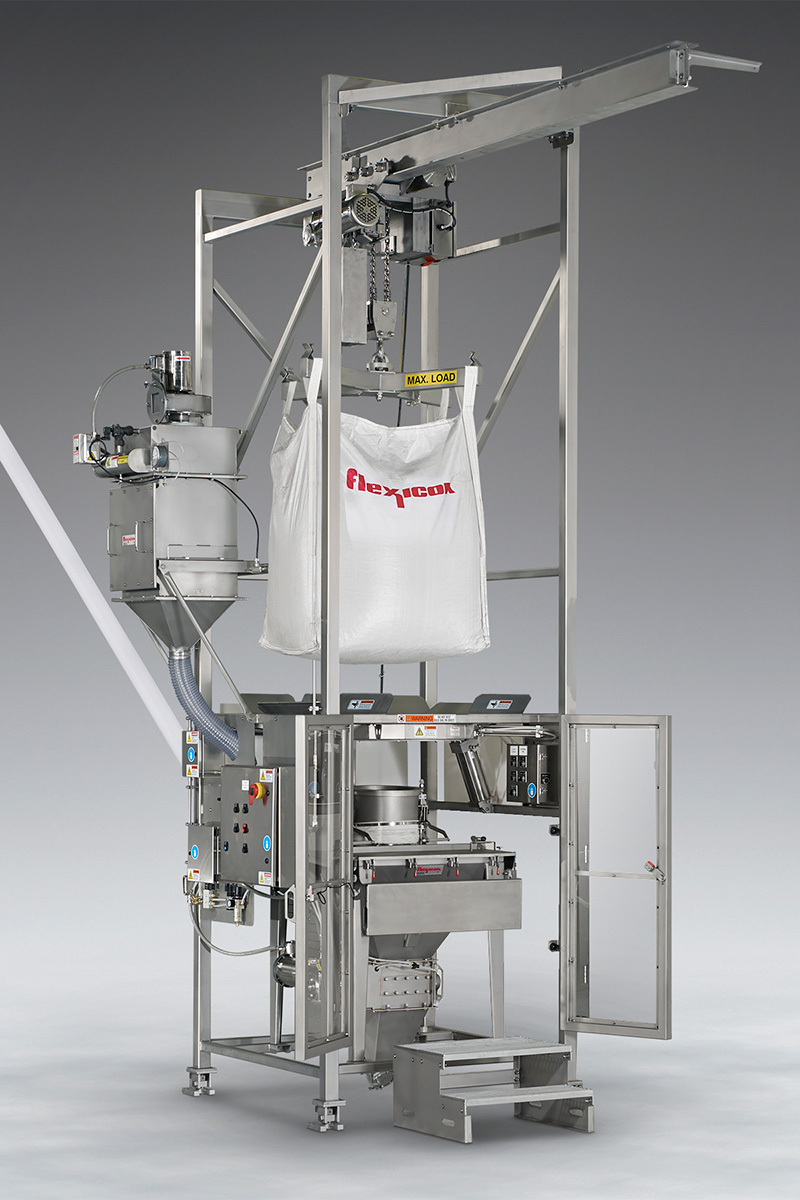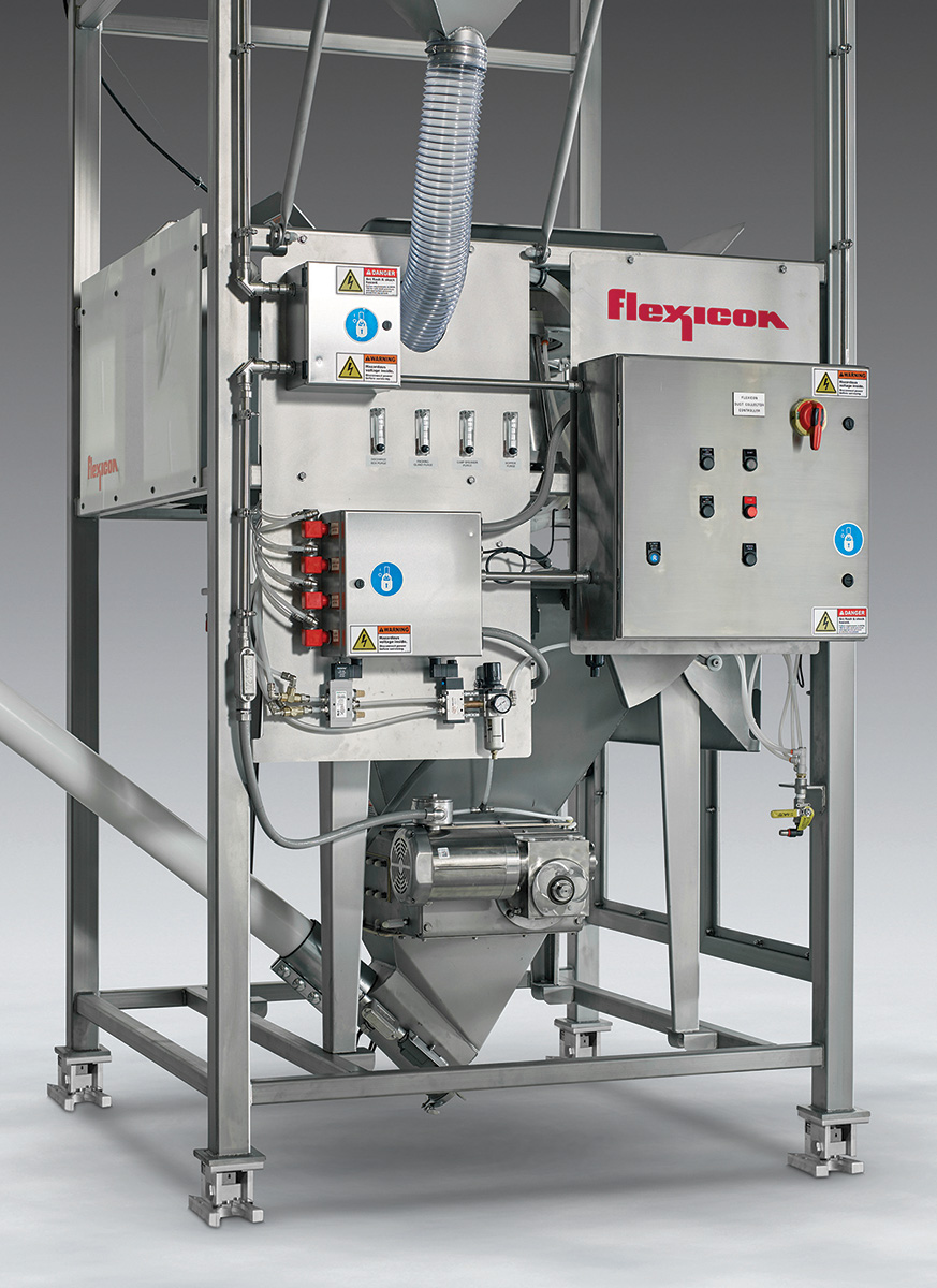 At timed intervals, FLOW-FLEXER® bag activators increasingly raise opposite bottom edges of the bag as it lightens, ultimately forming a steep V-shape that promotes complete discharge of free- and non-free-flowing materials from the bag.