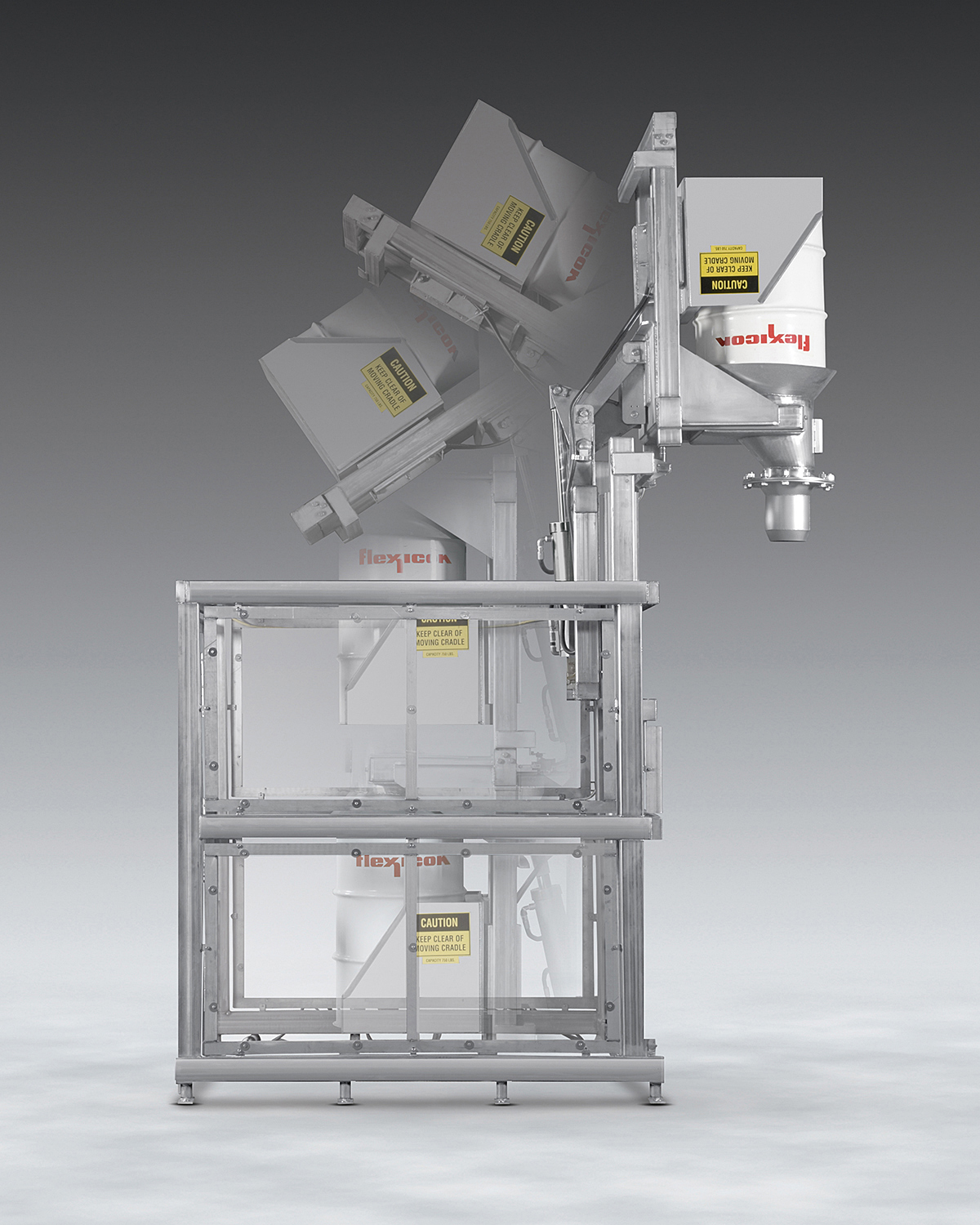 Trademarked TIP-TITE®, the dumper accommodates drums from 30 to 55 gal (115 to 200 liter) and can discharge bulk material into process vessels and equipment inlets 5 to 10 ft (1525 to 3050 mm) above the plant floor.