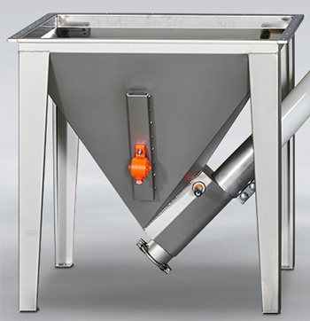 Hoppers – A wide range of hopper sizes and designs are available to feed the flexible screw conveyor’s charging adapter.